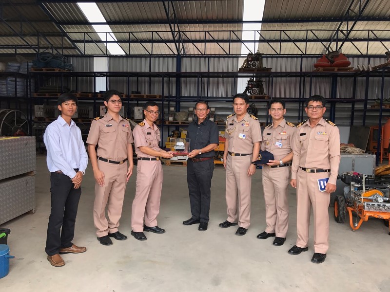 เมื่อวันพฤหัสบดีที่ 6 กรกฎาคม 2560 คณะทำงานโครงการวิจัยและพัฒนาของอู่ทหารเรือพระจุลจอมเกล้า กรมอู่ทหารเรือ ได้เข้าเยี่ยมชมอุปกรณ์ขจัดคราบน้ำมันของสมาคมฯ ณ TOMS Yards 2 อ.สัตหีบ จ.ชลบุรี ทั้งนี้ นาวาเอกจิราวัฒน์ ธีระนัฐพงษ์ ผู้อำนวยการโรงงานไฟฟ้าอู่ราชเทวีมหิดล ได้มอบของที่ระลึกให้กับ ดร.สมรัตน์ ยินดีพิธ ผู้จัดการสมาคมฯ