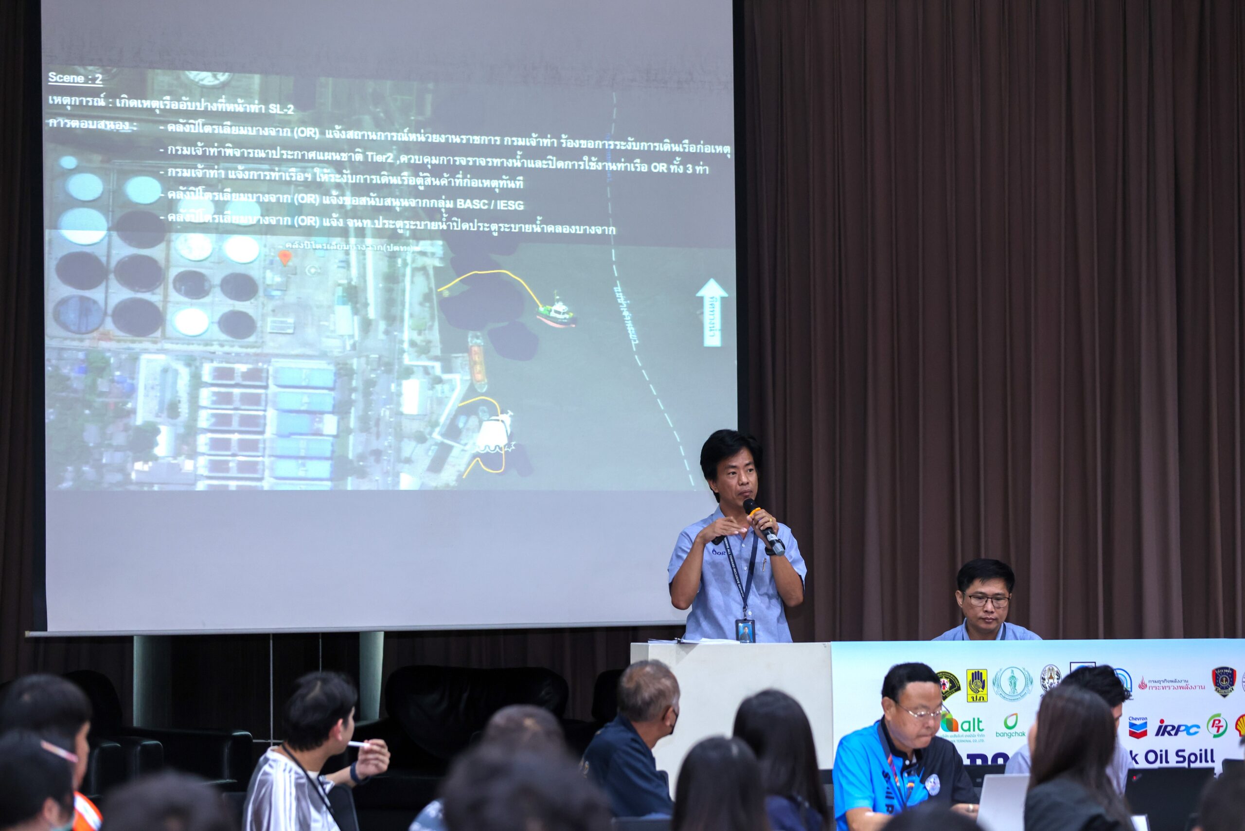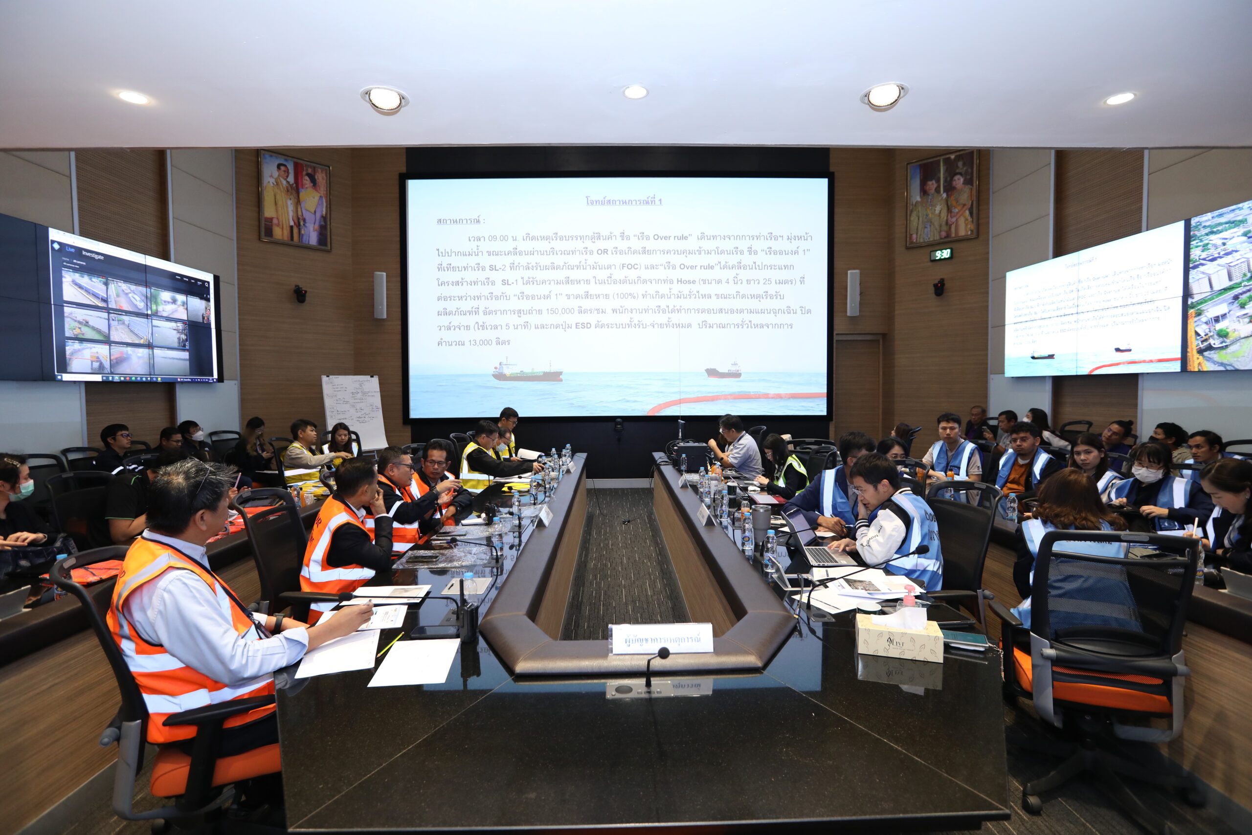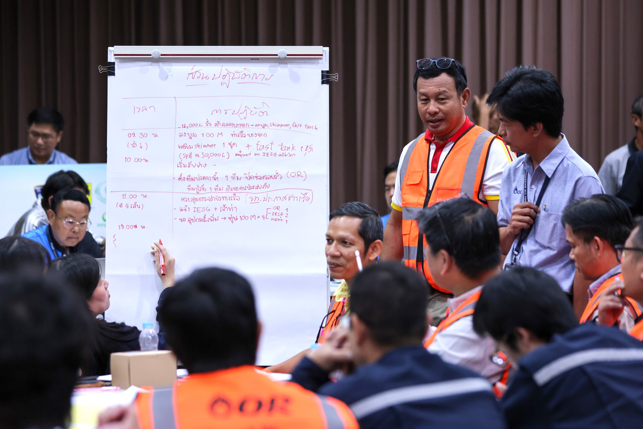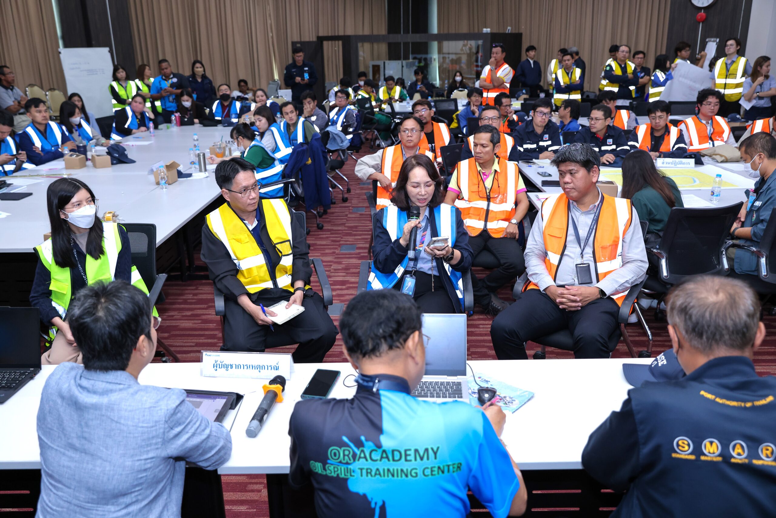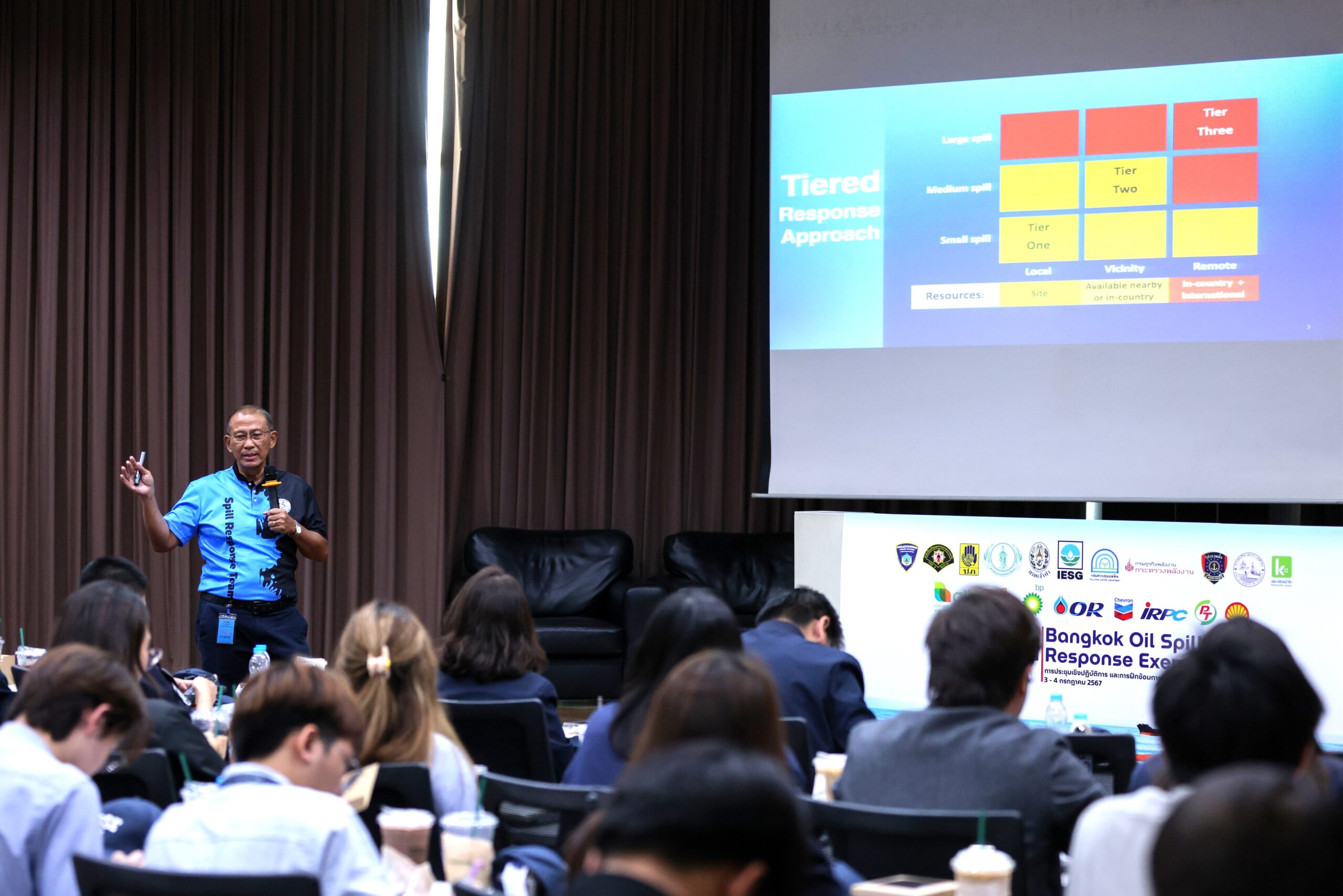 โดยช่วงเช้าวันที่ 3 กรกฎาคม 2567 เป็นการบรรยายให้ความรู้ เรื่อง “การรั่วไหลของน้ำมันและกลยุทธ์แนวคิดการเลือกวิธีการขจัดคราบน้ำมันที่รั่วไหล” และ “บทบาทหน้าที่ของแต่ละตำแหน่งของศูนย์บัญชาการเหตุการณ์ตามโครงสร้าง ICS” โดยคุณวิรัตน์  ภารตระศรี พนักงานบริหารระบบความปลอดภัย บริษัท ปตท. น้ำมันและการค้าปลีก จำกัด (มหาชน) และ ดร. สมรัตน์  ยินดีพิธ ผู้เชี่ยวชาญด้านการป้องกันและขจัดมลพิษน้ำมัน เป็นวิทยากรบรรยายหัวข้อดังกล่าว และในช่วงบ่าย เป็นการฝึกซ้อมแบบจำลองสถานการณ์เกี่ยวกับบทบาทและหน้าที่ตามโครงสร้างแผนฉุกเฉิน และในวันที่ 4 กรกฎาคม 2567 เป็นการฝึกซ้อมในที่บังคับการและภาคสนาม